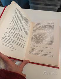Copertina rigida con elegante rilegatura rossa e fregio dorato.