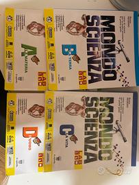 4 libri di tipologia A,B,C e D di scienze per 1-2-3 media (piccole sottolineature sono presenti in alcuni dei libri)