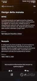 Moneta 500 lire del 1961 in argento unità d’Italia 100ª anniversario