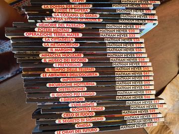tutti come nuovi : nathan never da 1 a 254 albi regolari, nathan albi giganti da 1 a 12 , agenzia alpha da 1 a 18, nathan speciali da 1 a 22, asteroide argo da 1 a 3, universo alpha da 1 a 4, maxi nathan da1 a 4 , never almanacco 1 e 2 , never & mystere 1 e 2 , legs nr 1 . totale 322 fumetti.