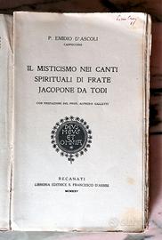 I GRANDI MISTICI FRANCESCANI. P.EMIDIO D'ASCOLI CAPPUCCINO, IL MISTICISMO NEI CANTI SPIRITUALI DI FRATE JACOPONE DA TODI. 1925 LIBRERIA EDITRICE SAN FRANCESCO D'ASSISI - RECANATI MCMXXV.