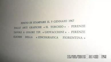 E' stato finito di stampare il 5 gennaio 1967 dalle Arti Grafiche "Il Torchio di Firenze", le tavole a colori sono della tipografia "Giovacchini" di Firenze e i clichès della "Zincografia Fiorentina"