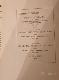 VENDO l'opera Novissimo Digesto Italiano composto da XX volumi (il primo diviso in due tomi). Inoltre l'appendice di aggiornamento composta in 7 volumi. tenuto in modo perfetto. Preferisco non spedire, eventualmente fate richiesta.