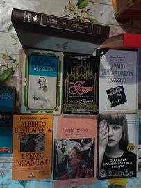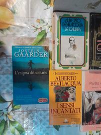 Nr. 11 libri vari: 2 di Alberto Bevilacqua, 1 di Jostein Gaarder, 1 di Delly, 1 di Selezione dal Reader's Digest, alcuni sentimentali, altri di genere thriller. Il totale è € 22. Disponibili, per inutilizzo, altri libri rosa, gialli e thriller, per ragazzi e bambini, religiosi, scolastici, di ricette, periodici sulla salute, di agraria, di barche e automobili, sul fisco, sulla normativa sul lavoro, di arredamento, di cucina, di lavori femminili, di attualità, di Selezione dal Reader's Digest, di bricolage, cataloghi dell'Ikea, cartine stradali italiane ed europee de La Repubblica, enciclopedie tra cui la Minerva del 1964 + l'Atlante e l'aggiornamento.