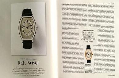 Numerosi numeri a disposizione (vedi oltre, tutti in perfette condizioni) della rivista internazionale edita dalla prestigiosa ditta di orologi Patek Philippe (PP) e distribuita solo ai clienti. La rivista - in edizione italiana - contiene articoli di approfondimento tecnici e storici su orologi della PP, scritti dalla casa madre o da esperti internazionali del settore, che trattano sia aspetti tecnici che storici: una documentazione unica, non paragonabile a nessun altra pubblicazione specialistica su questa casa top di orologeria. Arricchiscono ogni numero anche articoli vari di arte e cultura internazionale. Una collezione di riviste di difficile reperibilità, irrinunciabili per l’appassionato ed il collezionista e ad un prezzo contenuto. Si dispone di (tra parentesi la referenza di alcuni orologi illustrati in quel numero):