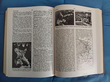 Bellissima "Nuova Enciclopedia per tutti", pubblicata da Editrice Italiana di Cultura, 4 volumi più una appendice, voci organizzate in ordine alfabetico, copertina rigida, decorazioni e lettere dorate sul dorsetto, pagine in carta patinata, carte geografiche a colori, edizione del 1969, in condizioni ottime, senza scritte o strappi.