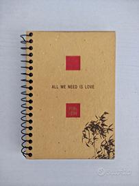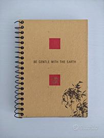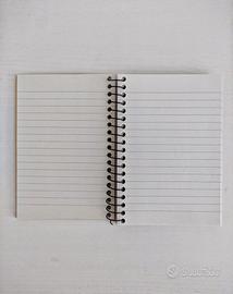 Copertina in cartoncino rigido, un centinaio di fogli (ogni taccuino ne contiene metà a righe e metà a quadretti) in carta riciclata
