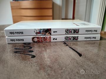 Primi due volumi del manga One Piece. Il volume 1 è come nuovo. Il volume 2 ha una piccola piega in un angolo del retro di copertina.