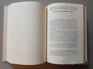Opere scelte di Carlo Miranda, 2 volumi, oltre 1.000 pagine, a cura dell'UMI (Unione Matematica Italiana) e con il contributo del CNR (Consiglio Nazionale delle Ricerche), Edizioni Cremonese, anno 1992. Volumi NUOVI, in perfette condizioni, che raccolgono i contributi più significativi di uno dei più grandi matematici del '900, allievo di Mauro Picone e Renato Caccioppoli.