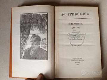 Il libro "Opere scelte", in lingua originale, di Aleksandr Sergeevič Griboedov, drammaturgo, poeta, compositore e diplomatico russo, include la biografia dell'autore e diverse opere: commedie, poesie, prosa e lettere, tra cui la famosa commedia "Che disgrazie l'ingegno".