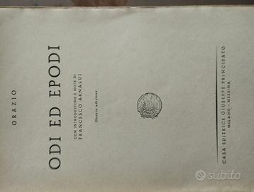 Orazio - Odi ed Epodi - introduzione di Francesco Arnaldi - quarta edizione anno 1947 -casa editrice Giuseppe Principato . il libro presenta la copertina un poco danneggiata , all'interno le pagine risultano ingiallite ma complessivamente in buone condizioni.