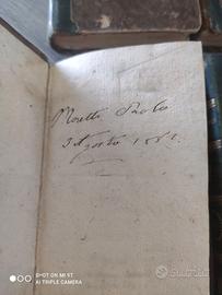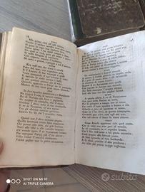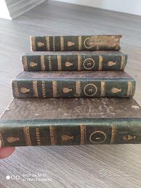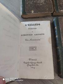 Edizione del "Orlando Furioso" di Lodovico Ariosto, pubblicata dalla Tipografia di Giuseppe Antonelli, nel 1829 a Venezia. 4 Tomi in formato tascabile, con rilegatura originale con fronte in pelle e piatti rigidi dipinti con effetto marmorizzati. Particolarità: presenta in tutti i volumi le firme di uno dei proprietari, un certo Sign. MOCETTI PAOLO 3 agosto 1881.