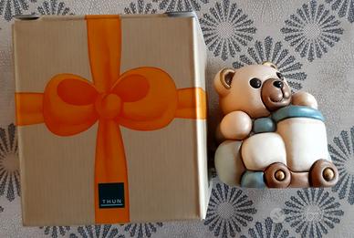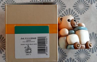 Orsetto Thun Teddy con Trenino Lui in ceramica dipinto a mano.