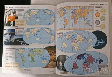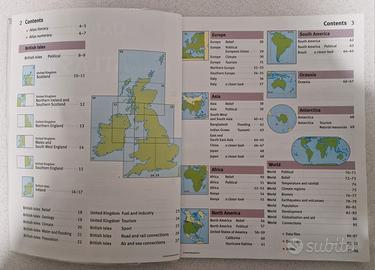 Contenuti Didattici: Include mappe fisiche e politiche dettagliate, con sezioni specifiche su temi del curriculum come terremoti, vulcani, clima e sviluppo economico
