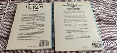 Vendo partiture di: - sinfonia n. 1 e 2 di Gustav Mahler; - 4 brani orchestrali di Maurice Ravel. Usate poco e bene. Vendibili anche separatamente.