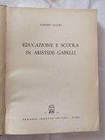 ALFREDO SALONI. Educazione e scuola in Aristide Gabelli. "I problemi di pedagogia" a cura di Luigi Volpicelli, volume settantottesimo. Roma, Armando, 1963. In-8° (cm 20,00), 319 pagine. Brossura editoriale privo della sovraccoperta. Leggero alone d'umido interessa la parte centrale ed inferiore del dorso e della brossura. Lieve e diffuso ingiallimento sulle pagine. Collana: I Problemi di Pedagogia. NOTA: Spese di spedizione come piego di libri NON TRACCIATO € 1,50. In raccomandata come piego di libri TRACCIATA € 5,00.
