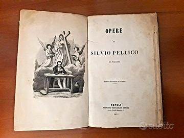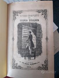 1) OPERE COMPLETE di Silvio Pellico, Romano Editore, Napoli, 1855, rilegatura rigida in mezza pelle, titolo in oro al dorso, 17x25 cm, 474 pagine, non rifilato perché originale. Edizione illustrata da incisioni.