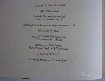Perchè mentiamo con gli occhi e ci vergognamo con i piedi - Allan Barbara Pease - Sonzogno Ed. 2005 - ISBN 88-454-1269-5 - come da foto