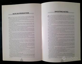 Peter Brook non è stato soltanto uno dei registi teatrali più importanti e innovativi del secolo scorso, ma anche autore di film che -nonostante l'esiguo numero di opere realizzate- hanno lasciato il segno nella storia del cinema: il monumentale, ipnotico Mahabharata ne è una testimonianza. Questo pressbook in tre lingue (italiano, inglese e francese), contenente informazioni tecniche e note di regia e corredato da tre foto di scena, è stato distribuito esclusivamente ai giornalisti presenti alla Mostra del Cinema di Venezia del 1988 dove il film è stato presentato in anteprima mondiale, ed è pertanto fuori commercio e introvabile altrove
