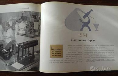 Pubblicazione in lingua italiana a cura dell'azienda farmaceutica statunitense Pfizer - dalle origini, 1849 fino a metà anni '50 del xx secolo- quando l'opera è stata stampata. Ripercorre la storia dell'azienda, dall'arrivo nel 1848 in USA di Charles Pfizer dalla natìa Germania, l'inizio dell'attività l'anno successivo col socio e connazionale Charles F. Erhart (era suo cugino) e le scoperte e/o messe in produzione (Acido citrico nel 1880, Penicillina nel 1941 , Streptomicina nel 1943, Bacitrina Poliximina nel 1945-1947, Terramicina nel 1950, Magnamicina nel 1951, Viomicina nel 1953 , Tetraciclina nel 1954, ecc.) con spiegazioni dei metodi di ricerca e produzione... Molte fotografie degli stabilimenti e fasi di ricerca e produzione nonché le foto dei due soci fondatori e i presidenti negli anni '50. Insomma una interessante pubblicazione della Pfizer più attuale che mai in questo periodo di Covid-19 e con il recente annuncio della realizzazione del suo vaccino! Copertina in cartone rigido telato. Dimensioni: grande formato, cm. 33,5 x 24,5; pagine n. 77. Condizioni: discrete, copertina con qualche macchiolina e dei piccoli forellini sulla costola, le pagine sono in carta patinata, alcune presentano delle macchie ed ex incollaggi fra di loro dovuti all'umidità con conseguenti abrasioni: a mio avviso il tutto non pregiudica l'apprezzamento e il valore dell'opera. Vendita fra privati: no garanzia, no restituzione. Euro 13,00 con ritiro brevi manu, oppure euro 15,00con spedizione postale come pieghi di libri (non tracciato) oppure euro 20,00 come Raccomandata (consigliato).