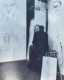 Rarissima pubblicazione surrealista sull’artista Bernard Pfriem con riflessioni di Julien Levy, il tema dello specchio e del riflesso sono efficacemente rappresentati nel pamphlet che, aprendosi, rivela due specchi - quello di sinistra integro e quello di destra volutamente crepato. All’interno, oltre alle fotografie di Hans Namuth, il pieghevole “when you look at a mirror what do you see?” - anno 1963 Galleria Iolas NY