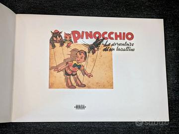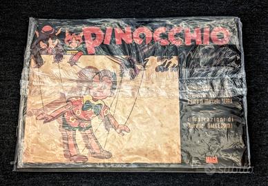 Pinocchio, le avventure di un burattino Adattamento al testo originale di C. Collodi a cura di Marcello Serra Illustrazioni di Aurelio Galleppini MAGA Editrice G2 Sardegna Editrice 1989 Album raro, 30x21cm 32 pagine illustrate + biografia di Aurelio Galleppini e Marcello Serra Nuovo, pellicola originale aperta solo ora per fare foto da pubblicare