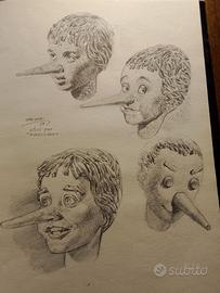 LIbro con copertine illustrate, e all'interno il testo e tavole incise. Due fiabe toscane, in 8" pp, 96, con 7 tavole disegnate a matita, riprodotte e firmate " Gregori 87', studi per Pinocchio Geppetto, Mastro Domenico,