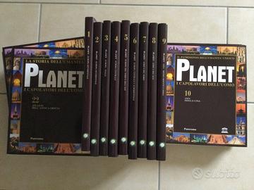 Planet - I capolavori dell’uomo. De Agostini per Panorama, 2003, venticinque volumi in legatura editoriale cartoncino goffrato con sovraccopertina illustrata a colori. 4700 pagine con migliaia di fotografie a colori. Collezione completa in 25 volumi, inclusi i 5 voll. di atlante geografico e 5 di atlante storico. Pari al nuovo, ottimamente conservata, senza strappi.