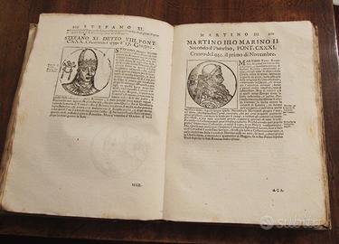 Solo il volume relativo all'opera del Platina, terminante con Paolo II: l'edizione proseguiva, ad opera di vari altri, fino al pontificato di Benedetto XIII (+1730); bella traduzione in lingua italiana dall'originale latino (prima ed. 1479: Brunet, IV, 692) corredata da graziose xilografie per ogni papa elencato. Il volume si apre con le dediche di prammatica seguite dalla vita dell'A. scritta da Niccolò Angelo Caferri - su 11 pagg. non numerate, unica parte in lingua latina - quindi dall'indice dei Pontefici, dall'elenco dei Cardinali e dalla "tavola delle cose più notabili", proseguendo infine con le vite dei pontefici (pagg. 1-152). Graesse, V, 313 per l'ed. precedente: Venezia, Monti, 1715.