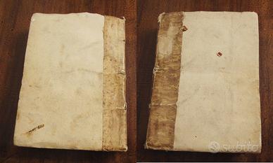 Coperta modesta, con macchie e strappi, legatura un po' lenta; qualche scritta e sottolineatura a lapis al frontespizio. Carte talora brunite, con qualche macchia specialmente al margine inferiore, piccole mancanze marginali, frequenti pieghe e consimili difetti; una piccola galleria di tarlo al margine interno delle ultime 3 cc. resta lontana dal testo. Copia poco meno che discreta, apprezzabile per i margini ampi - che spesso arrivano alle barbe - e per le belle immagini; volume collazionato e internamente completo, in sé concluso ma facente parte di un'edizione più ampia.