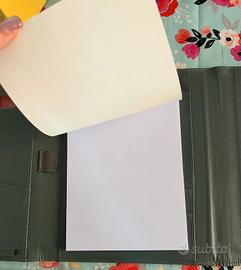 Mai usato, con blocknotes e tasche interne. Chiusura a calamita. Apposito spazio per inserire la penna.