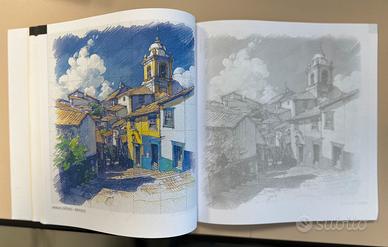 PosterLike 56 Illustrazioni per praticare le tecniche con matite colorate. Esercizi per disegnare scenari urbani.