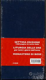 In questo libro è contenuta, nella prima parte, la preghiera per ogni giorno dell’anno liturgico, suddivisa nei tempi di Avvento, Natale, Quaresima, Settimana santa, Tempo di Pasqua e Tempo ordinario. Seguono le Feste e solennità del Signore, le Celebrazioni dei santi, Liturgie per circostanze particolari e il Lezionario. Ed. Qiqajon, anno 2017, copertina rigida e incellophanato, pag. 1534