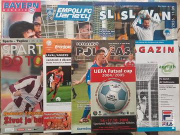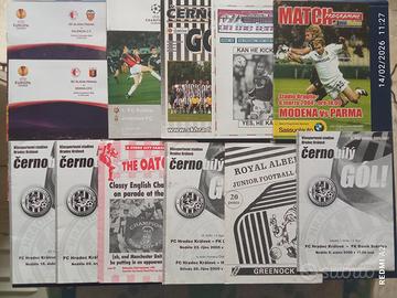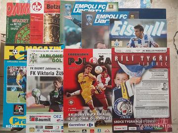 Lotto n.90 programmi e fanzine di calcio Italia-estero, anni 1985-2019, seguenti club: Bayern Monaco, Borussia Dortmund, Tsv 1860 Monaco, Hannover '96, nazionale tedesca (vari incontri), Schalke '04, 1.Fc Saarbrucken, Schonebecker SV 1861, (squadra dilettanti) (Germania); Arsenal, Stoke City, Sunderland, Cardiff City, Bristol City (Inghilterra); Legia Varsavia (Polonia); Laval, Angers SCO, AS St Etienne, Olympique Marsiglia, Stade Rennais (Francia); FC Zurigo (Svizzera); Empoli, Livorno, Modena, Parma, Cuiopelli Cappiano (Lega Pro/C2, Toscana, sciolta) (Italia); Olympiakos, Panathinaikos (Grecia); Sigma Olomouc, FC Kosice, Slezsky FC Opaca, Holicky 2000 Fotbal, SK Holice, OF Sajd Ceske Budejovice, SK Slavia Praga, SK Slovan Bratislava, SK Hradec Kralove, AC Sparta Praga, FC Slovan Liberec, FC Artmedia Petrzalka Bratislava, FK Baumut Jablonec, FC Petra Drnovice, FC Kaucuk Opaca, Nazionale Repubblica Ceca, FK AS Pardubice, FC Zenit Ceslav, FC Spartak Rychnov, FK Obz Letohrad (Repubblica Ceca); River Plate (Argentina)