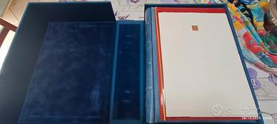 Il libro è conservato nella sua scatola blu rivestita di velluto ed è dotato di tutta la documentazione riguardante l'acquisto dell'opera da parte di mio nonno: certificati di garanzia e autenticità, atto di vendita, ecc.