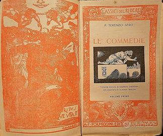 Raccolta dei testi teatrali di Terenzio edita da Angelo Fortunato Formiggini a Roma nel 1923. 2 volumi di 272 e 248 pagine. Illustrazioni di Alberto Martini. Legatura editoriale. Lievi bruniture alle copertine, interni ottimi