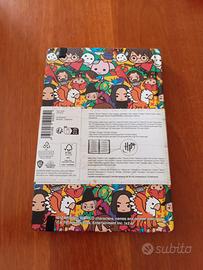 - Copertina rigida con stampa colorata di personaggi e simboli di Harry Potter.