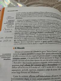 Libro di letteratura per le scuole superiori. Presenta delle sottolineature e delle scritte in matita