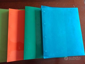Vendo lotto di 6 raccoglitori con 4 anelle in plastica (polipropilene) colorati, altezza 2,5/3 cm