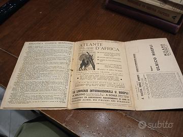 Contenuti: Pubblicità d'epoca di opere storiche come l'Atlante d'Africa, la rivista "Sapere", volumi di Giuseppe Tucci e la Biblioteca Classica Hoepliana.