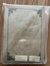 Il libro, con copertina originale decorata e pagine interne, mostra segni del tempo: usura, ingiallimento, piccole lacerazioni e distacco