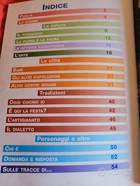 tutto ciò che devi sapere della Puglia, tante notizie, tante immagini e tutto l'occorrente per le tue ricerche. questa collana si avvale di numerose illustrazioni e di originali rubriche per coinvolgere introdurre il lettore allo studio delle regioni d'Italia. ogni volume esplora sia i temi tradizionali della geografia, dalla conformazione Geofisica del territorio alle vicende storiche, alle risorse economiche, alle tradizioni e alla cucina; sia gli aspetti più curiosi come le feste di paese, le leggende, le maschere caratteristiche, l'artigianato locale, i prodotti tipici regionali punto Inoltre quattro pagine di foto da ritagliare per arricchire le tue ricerche in classe
