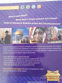 interessantissimo questo libro che spiega le origini i fondamenti e le tradizioni di tutte le regioni del mondo. troverete le risposte a tante domande: Dove è nato Gesù? Quali sono i cinque pilastri dell'Islam? Come si chiamava Buddha prima dell'illuminazione? le informazioni sono presentate in modo chiaro avvincente e di facile comprensione, in varie unità, corre date da numerose fotografie ed illustrazioni. bambini e ragazzi potranno così imparare a conoscere le diverse religioni divertendosi punto tutto ciò che si deve sapere: ebraismo cristianesimo. Islam. induismo.buddismo. e altre religioni