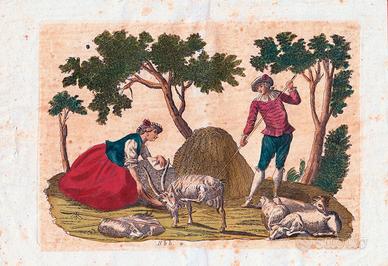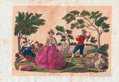 * SERIE DI N. 4 STAMPE CON SCENE CAMPESTRI CON DAME E CAVALIERI: