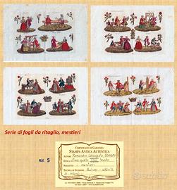 * SERIE DI N. 4 STAMPE CON FOGLI DA RITAGLIO CON I MESTIERI: