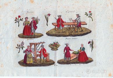 - Nota: ogni stampa è suddivisa in quattro scenette nellaquale ricorrono vari mestieri indicati in latino.
