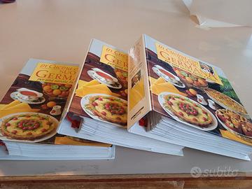 Ricettario di Suor Germana tre volumi edito da De Agostini .Argomenti compresi :Primi piatti raccolti in due capitoli,Antipasti e pesci,terzo capitolo,verdure uova e salse ,quarto capitoli.Carni ,quinto capitolo ,e per concludere Dolci al sesto capitolo. Composto di schede facilmente consultabili.Che dire "buon appetito" dopo che avrete cucinato secondo la ricetta.