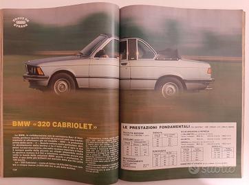 Vendo copia in buone condizioni della rivista Quattroruote di Giugno 1982 (N°320). Numero ricco di interessanti prove su strada: - Bertone Cabrio (su base Fiat Ritmo) - Volkswagen Golf Cabriolet GLS - Bmw 320 E21 cabrio Baur - Bertone X1/9 IN - Pinifarina Spidereuropa - Alfa Romeo Spider 1.6 e 2.0 - Renault 5 GTL, TS e TX - Rover 2400 SD Turbo - Fiat 131 2000 a GPL E inoltre impressioni di guida della Austin Mini, Opel Ascona Diesel e Bentley Mulsanne Turbo. Disponibile spedizione in tutta Italia con piego di libri non tracciato o con raccomandata tracciabile (con sovrapprezzo di 3 euro rispetto al costo indicato nell'annuncio). Pagamento tramite Tuttosubito, bonifico bancario o paypal. Dispongo di molti numeri di Quattroruote dagli anni '70 fino a fine anni '90. Chiedete se vi interessa qualche numero non inserzionato.
