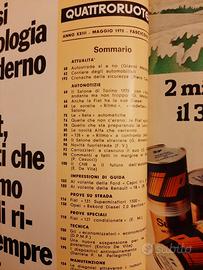 Dispongo di molti numeri di Quattroruote dagli anni '70 fino a fine anni '90. Chiedete se vi interessa qualche numero non inserzionato.