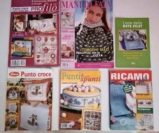 Lotto di 7 riviste per il ricamo e il punto croce, di seguito la lista: Punto croce profilo N' 30. Mani di fata N' 1 Gennaio 2004. L'arte della rete filet, supplemento a L'arte del filet N' 1 dell'anno 2001. Punto croce N' 41. Punti & Spunti N' 3. Ricamo Più, supplemento a Mani d'oro N' 3. Mani d'oro N' 14 anno 1966 Lavori a maglia ricamo e tombolo. Oggetti usati, ben conservati con inevitabili segni del tempo/d'usura più che altro sulle copertine. Preferibile il ritiro in negozio, contattare per eventuale spedizione o informazioni in merito o vendita di singoli pezzi. B11